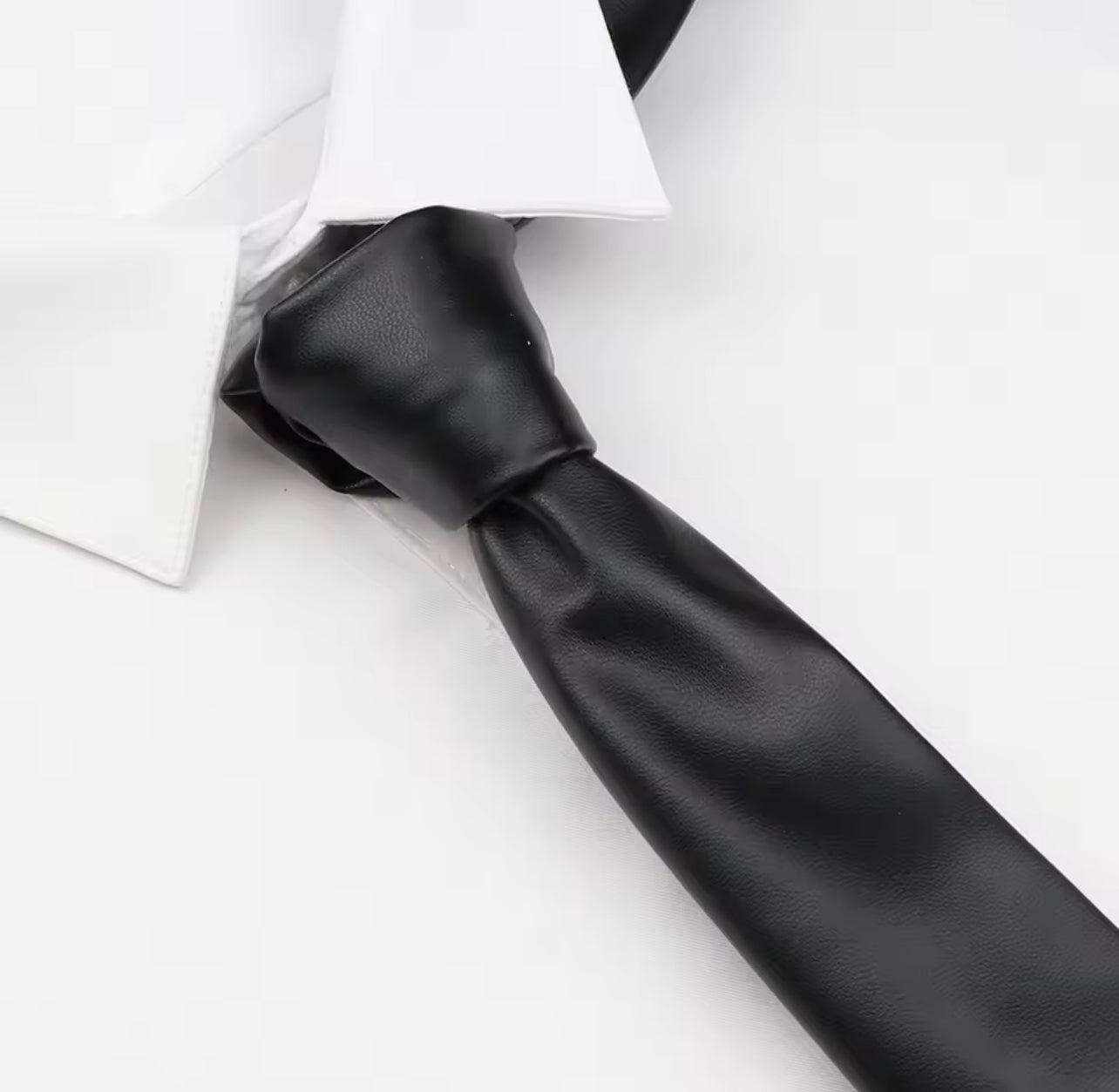 Introducing our Vegan Leather Kneck Ties, made of high-quality Vegan leather with solid colors in black, and brown.  Perfect for any occasion, from casual to wedding to business attire, these fashion ( as seen on many runways for FW26) neckties add a touch of sophistication and style to your outfit. Upgrade your look with these fashionable ties.